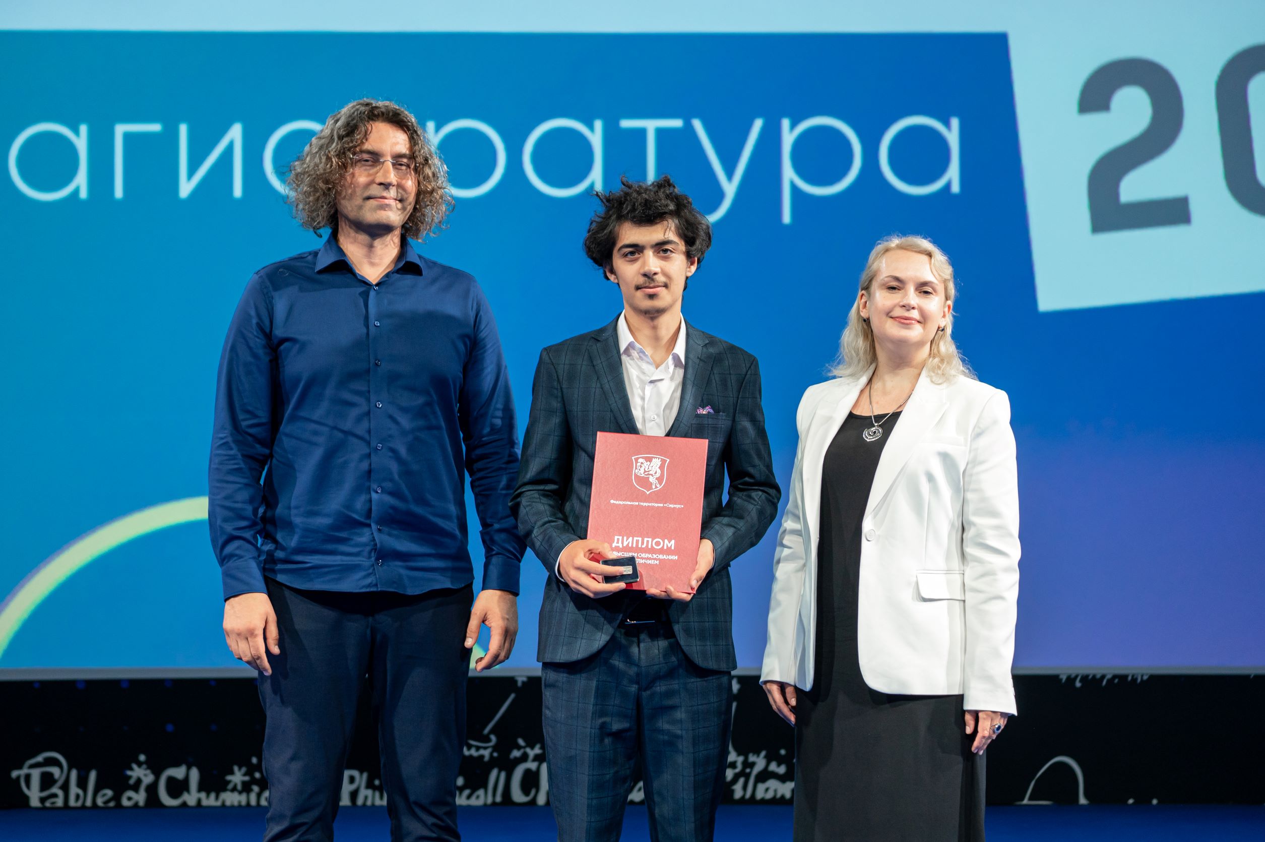 Глава администрации федеральной территории «Сириус» Дмитрий Плишкин пожелал ребятам сложных задач, которые помогут им стать настоящими профессионалами. Наставникам он выразил благодарность за воспитание талантливых выпускников и отметил: большое количество дипломов с отличием подтверждает правильность выбранного ими пути. Шестерым магистрантам — Артёму Воронову, Алле Альто, Елене Фединой, Никите Миргородскому, Маргарите Беловой и Анастасии Димитриевой — глава администрации вручил грамоты за вклад в развитие общественной жизни Университета.
